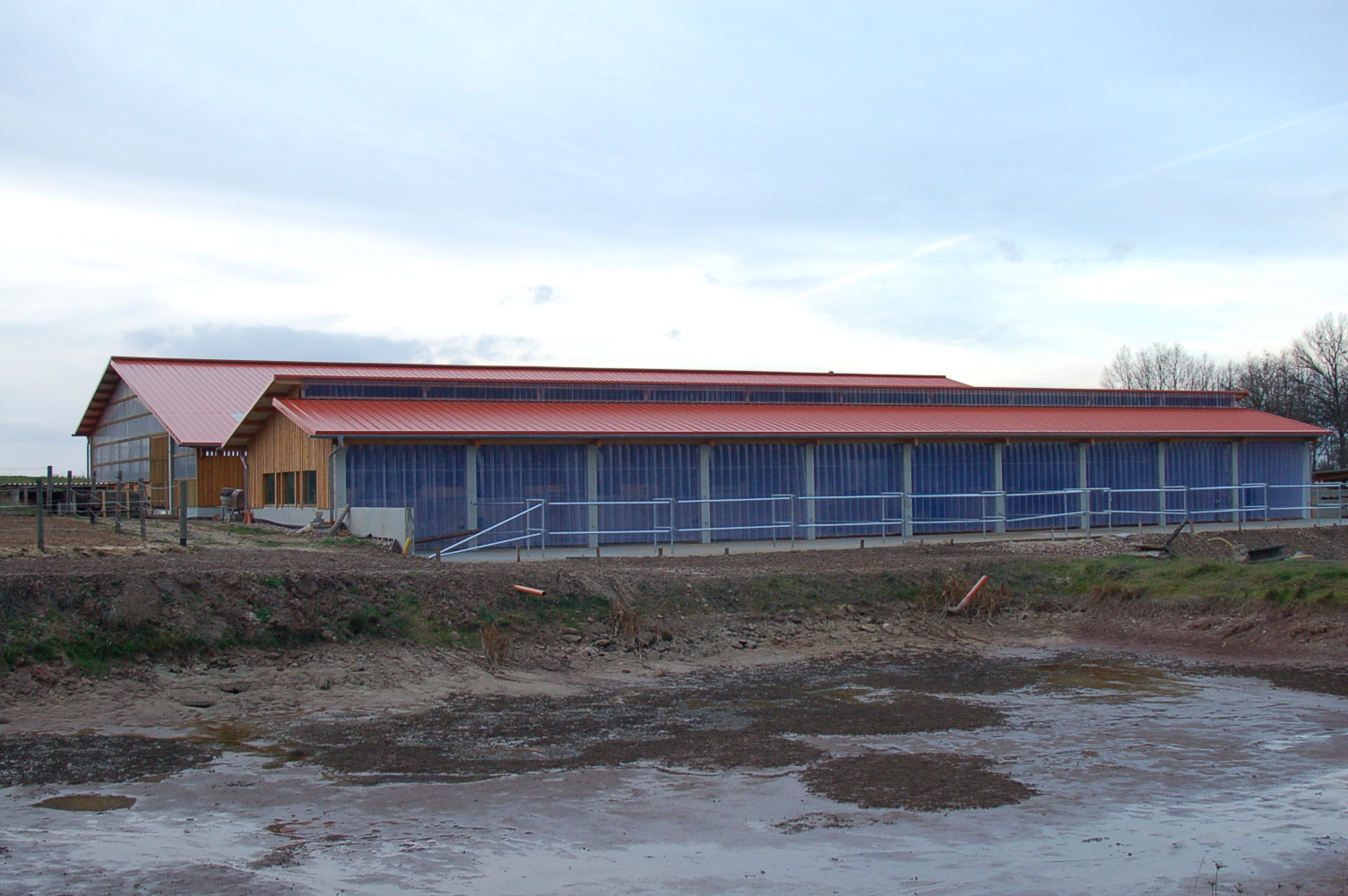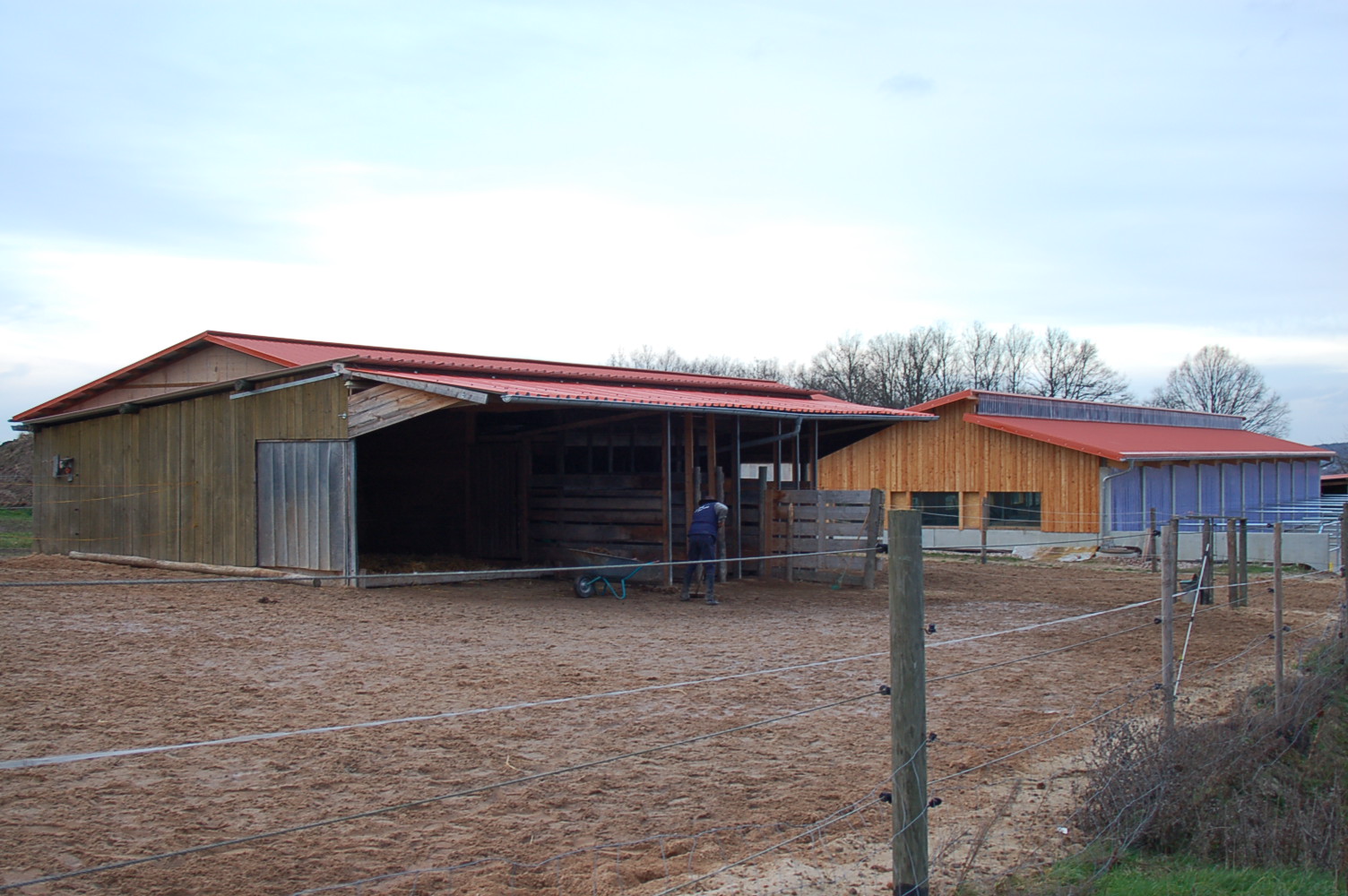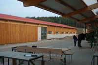 Der Aussenklimastall direkt neben der Bewegungshalle